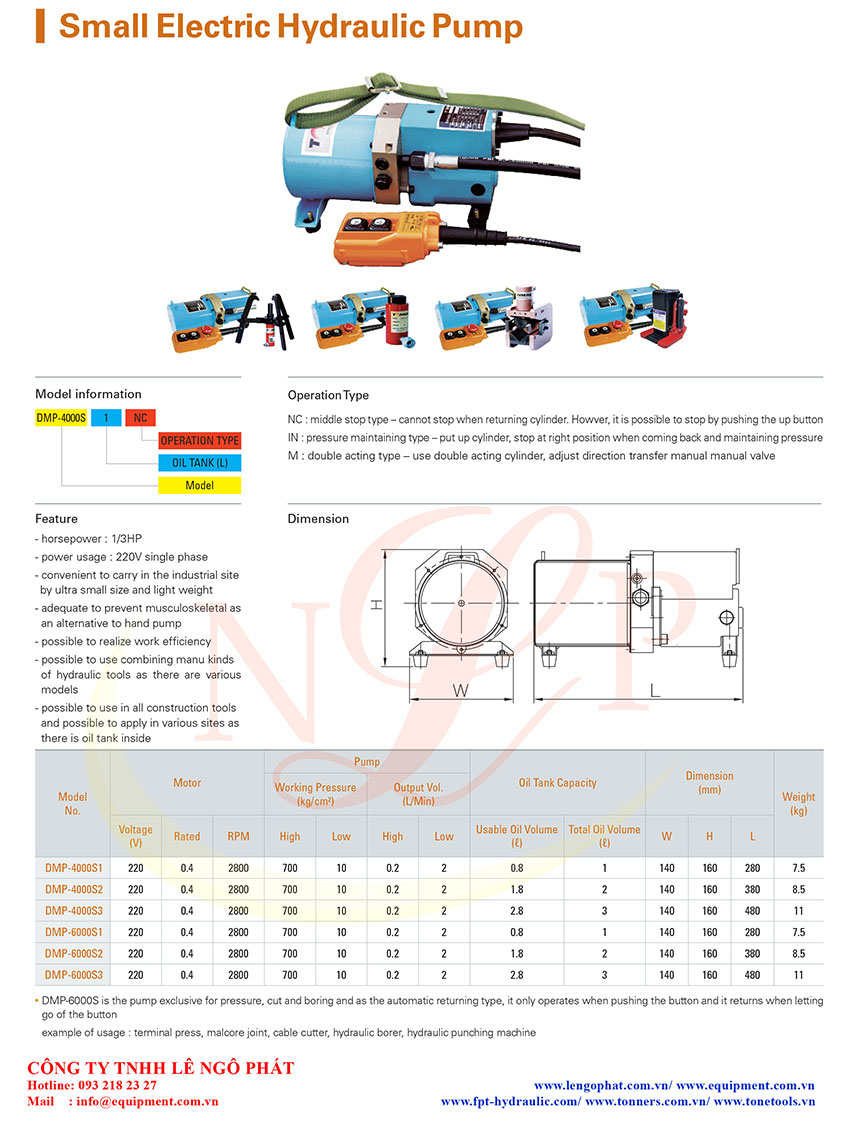 Model bơm điện thủy lực mini : DMP-400S1, DMP-4000S2, DMP-4000S3, DMP-6000S1, DMP-6000S2, DMP-6000S3