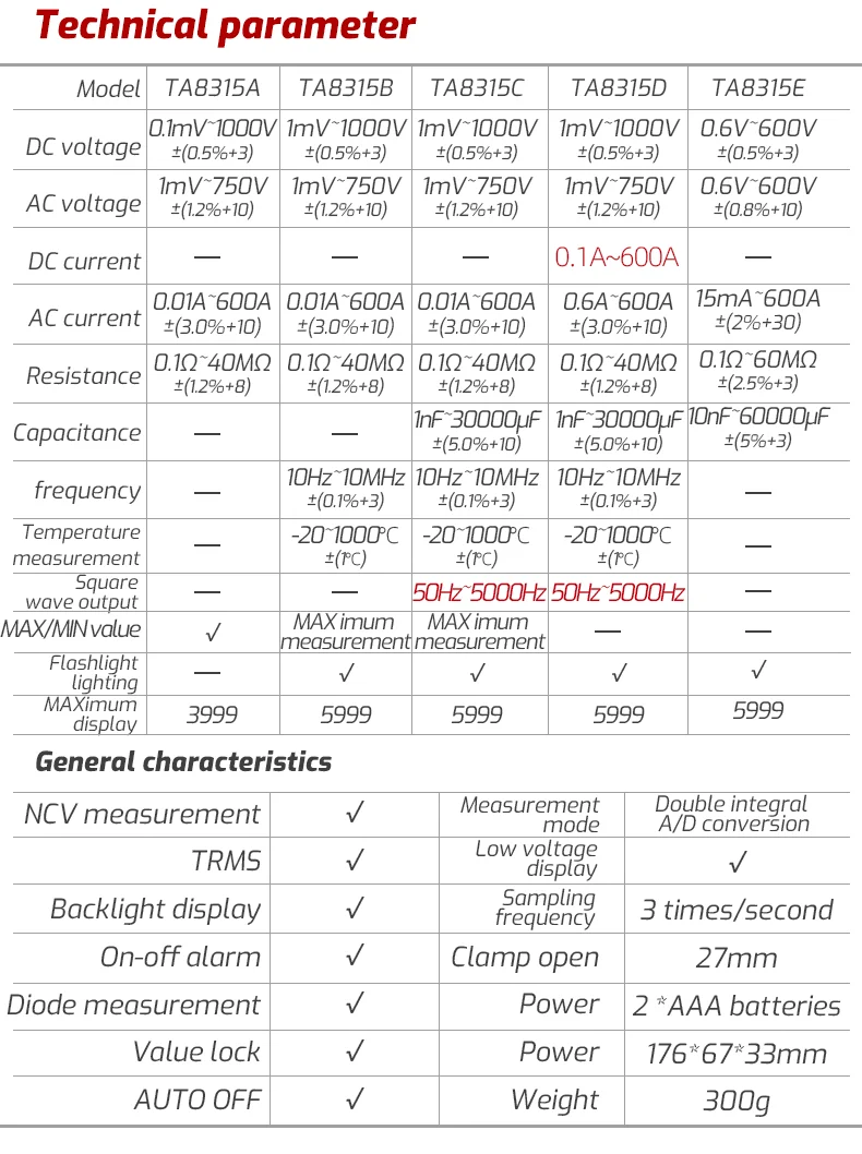 1mV~1000V ±(0.5%+3) |