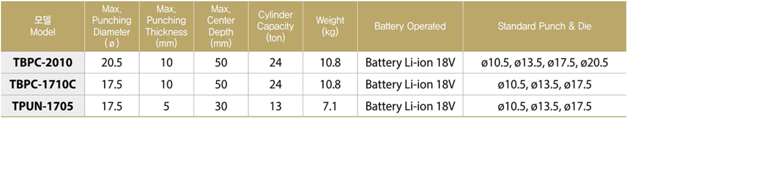 TBPC-2010 Súng đột lỗ thủy lực bằng pin 24 tấn Tecpos - Korea