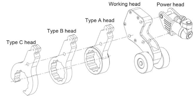 3) Đầu nguồn của cờ lê CLCD có thể thay thế được với cờ lê thủy lực KLCD . Nhưng mô hình này không có chức năng dành riêng. Sau khi sử dụng, bơm thủy lực chạy theo chiều quay trở lại, và cờ lê cần được định vị lại sau mỗi chu kỳ hoàn thành.