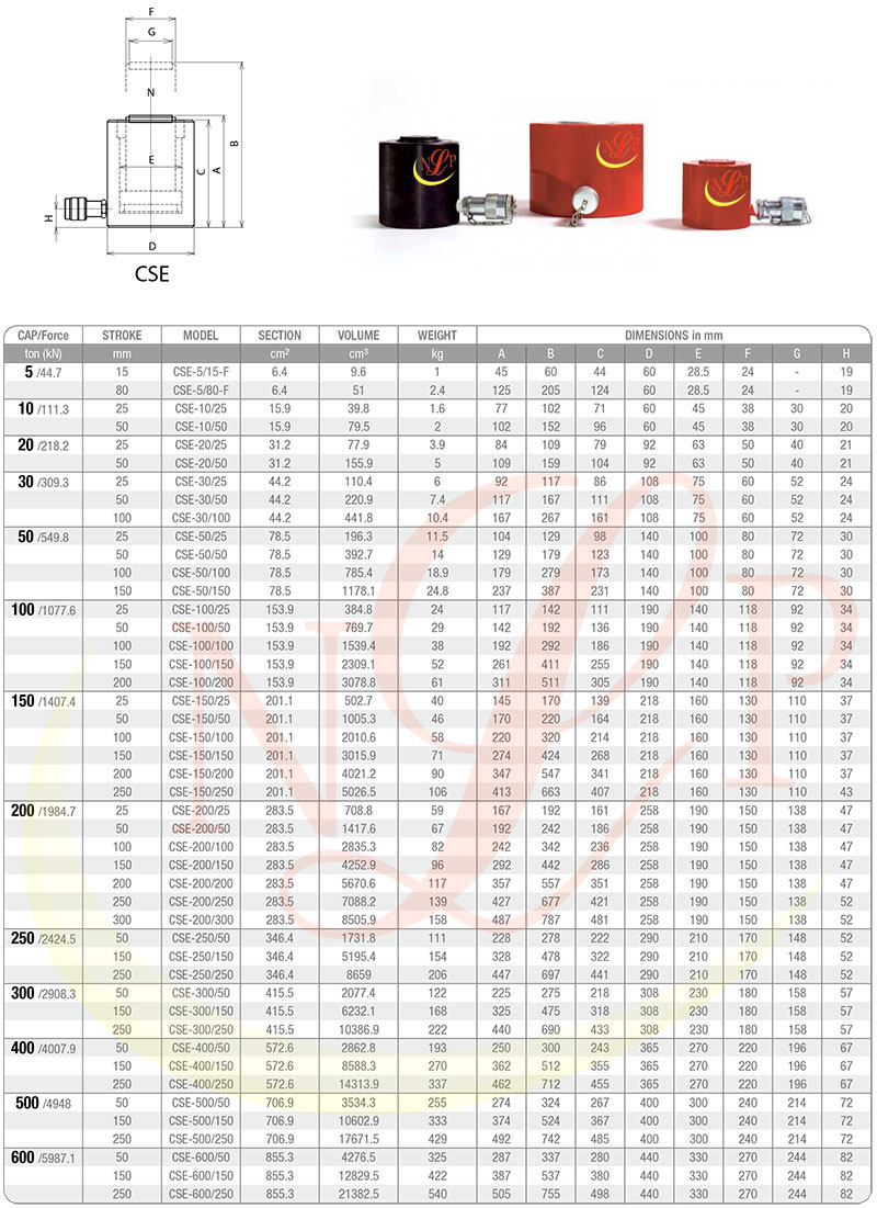 Kích thủy lực 1 chiều 30 tấn CSE-30/25 hồi về bằng tải