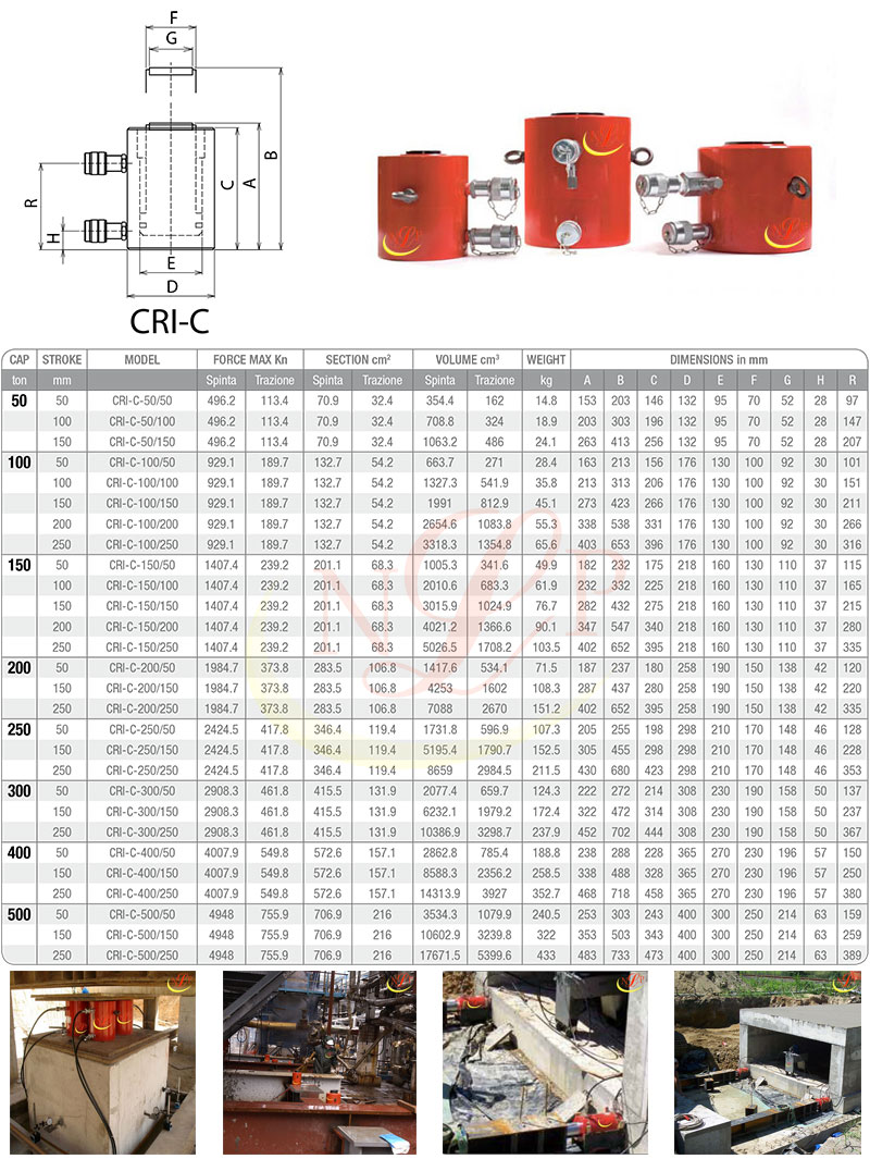 Kích thủy lực 2 chiều 100 tấn CRI-C-100/50