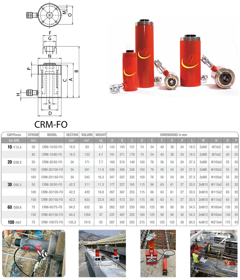 Kích thủy lực rỗng 1 chiều 10 tấn CRM-10/80-FO hồi về lò xo